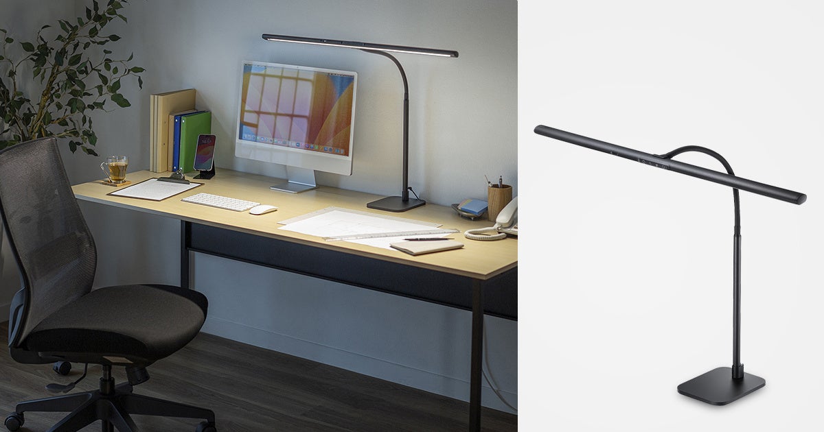 幅80cmのワイドなLEDでデスク全体を均一に照らす、卓上ベースタイプのLEDデスクライトを発売