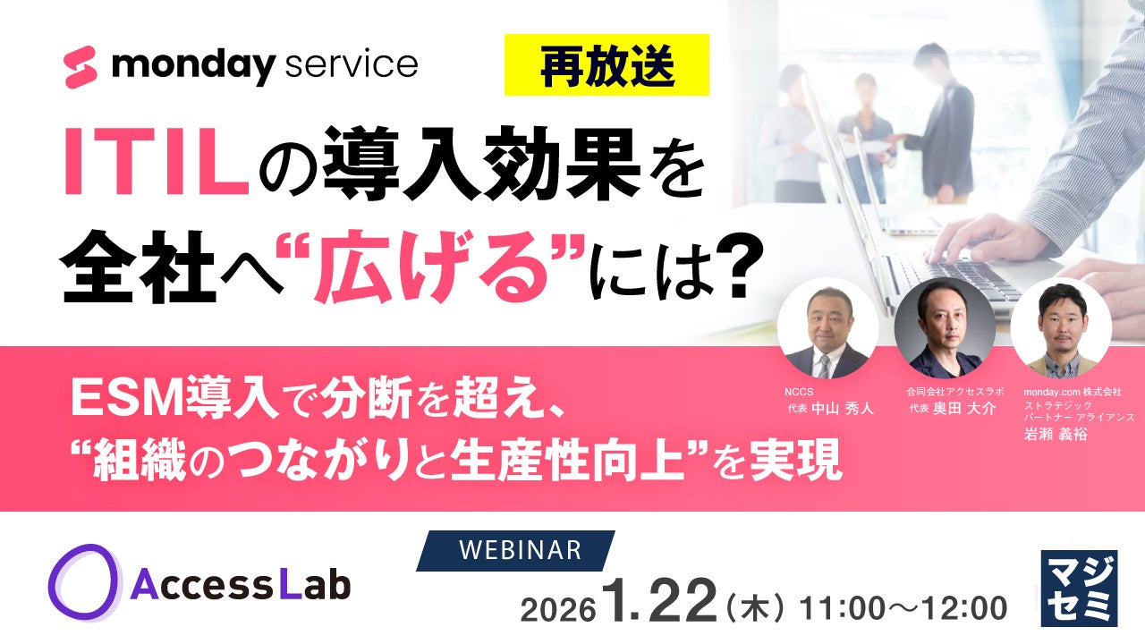 マジセミ株式会社は「【再放送】ITILの導入効果を全社へ“広げる”には?」というテーマのウェビナーを開催します。