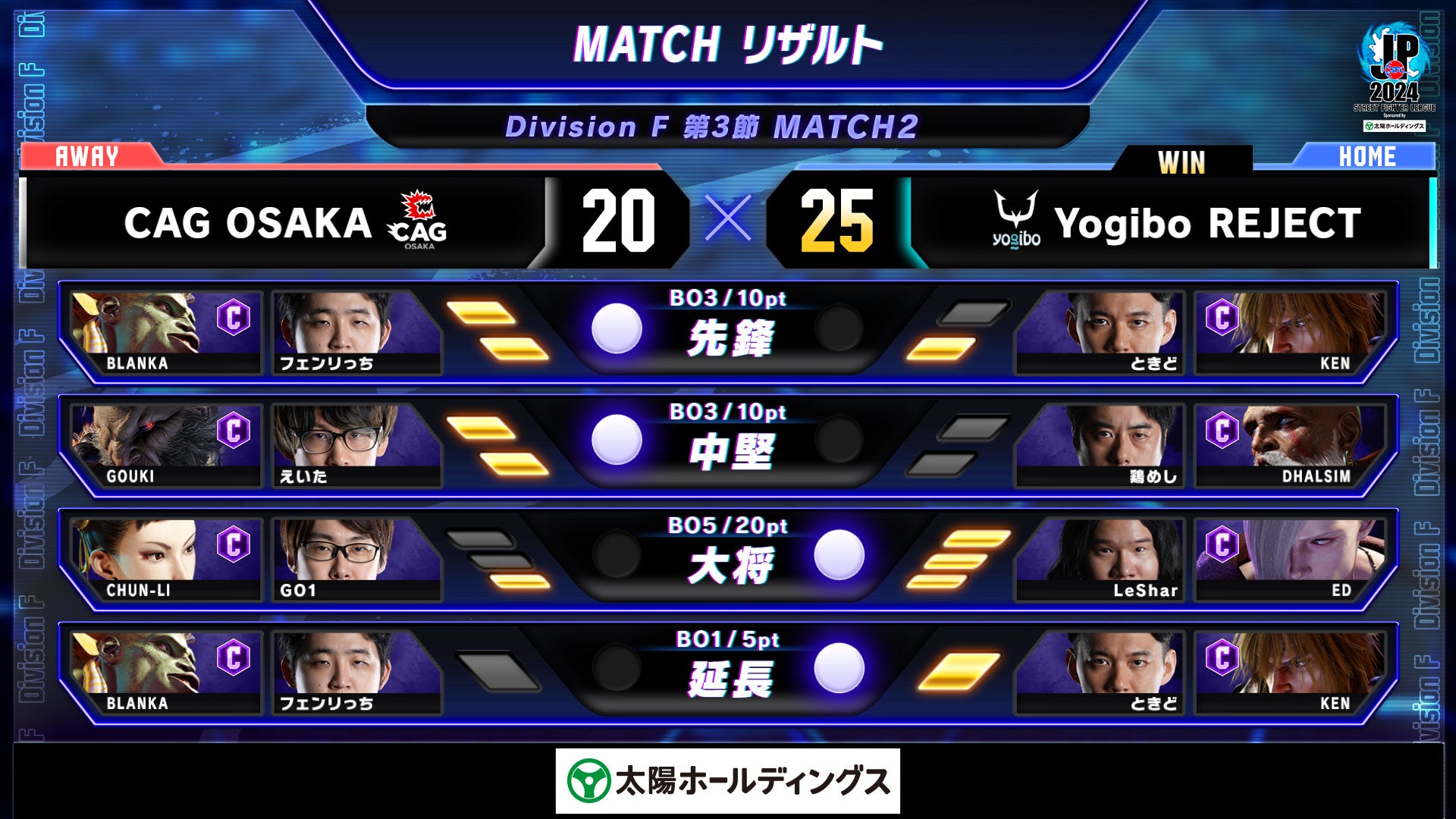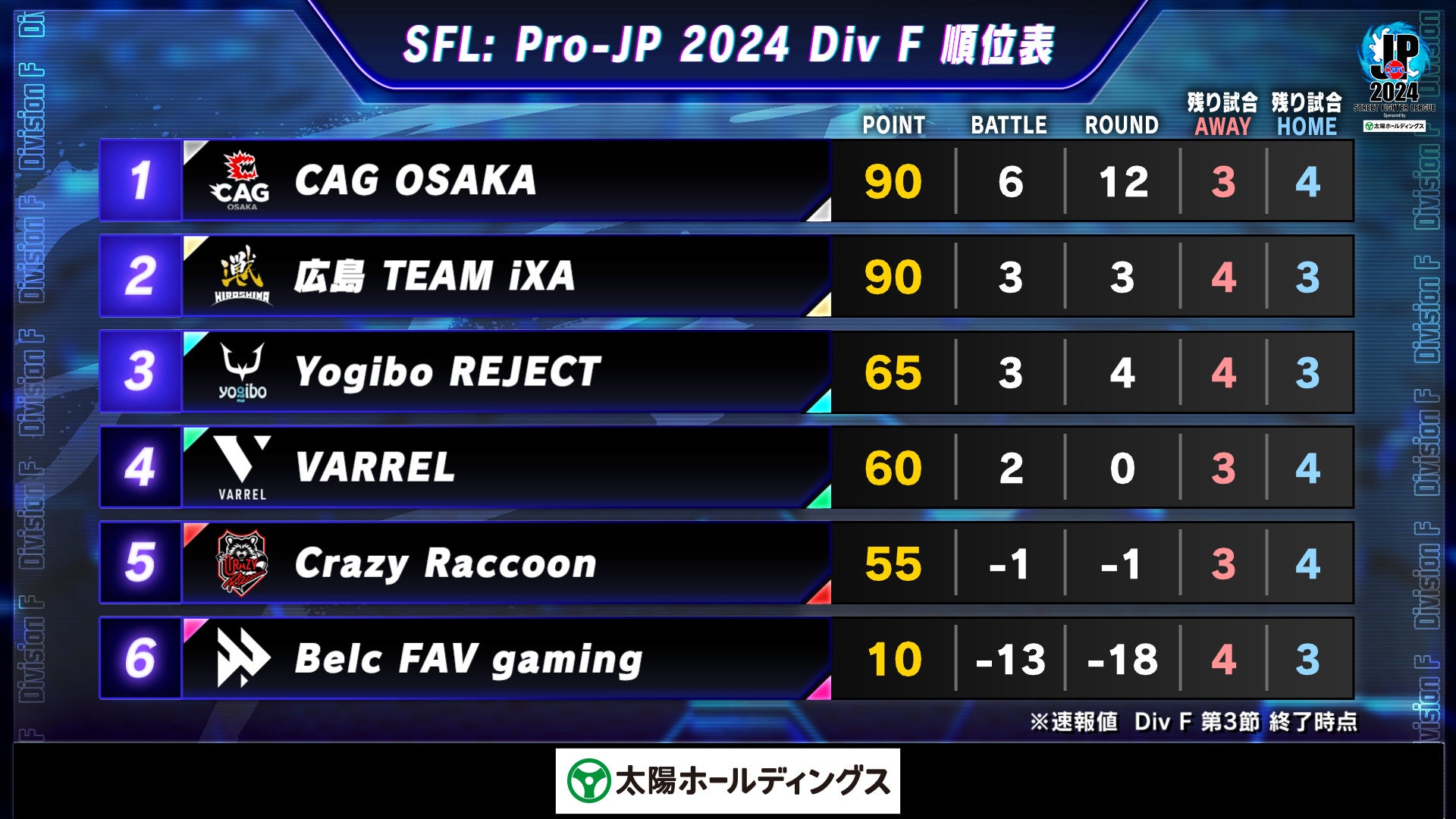 「ストリートファイターリーグ: Pro-JP 2024 Division F 第3節」結果速報!