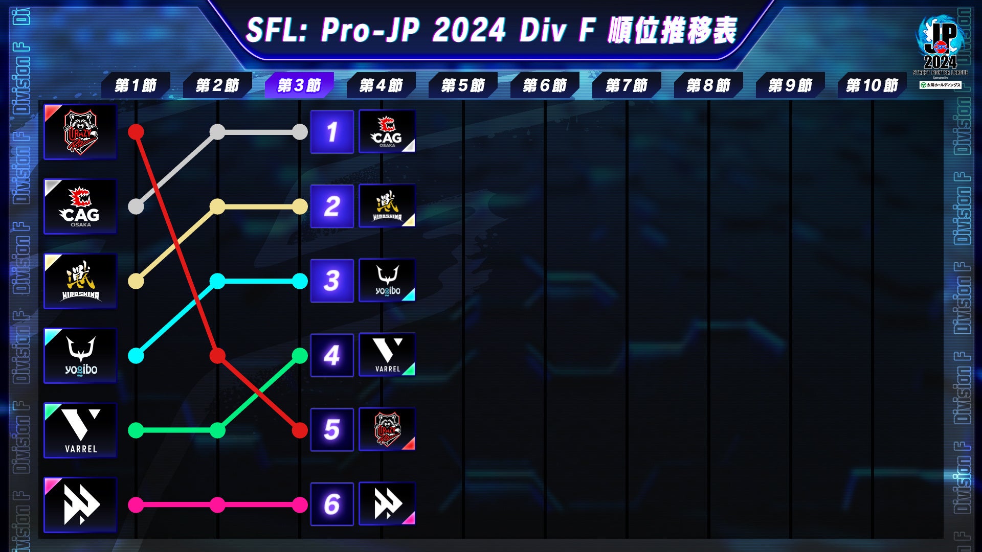 順位推移表(Division F 第3節 終了時点)