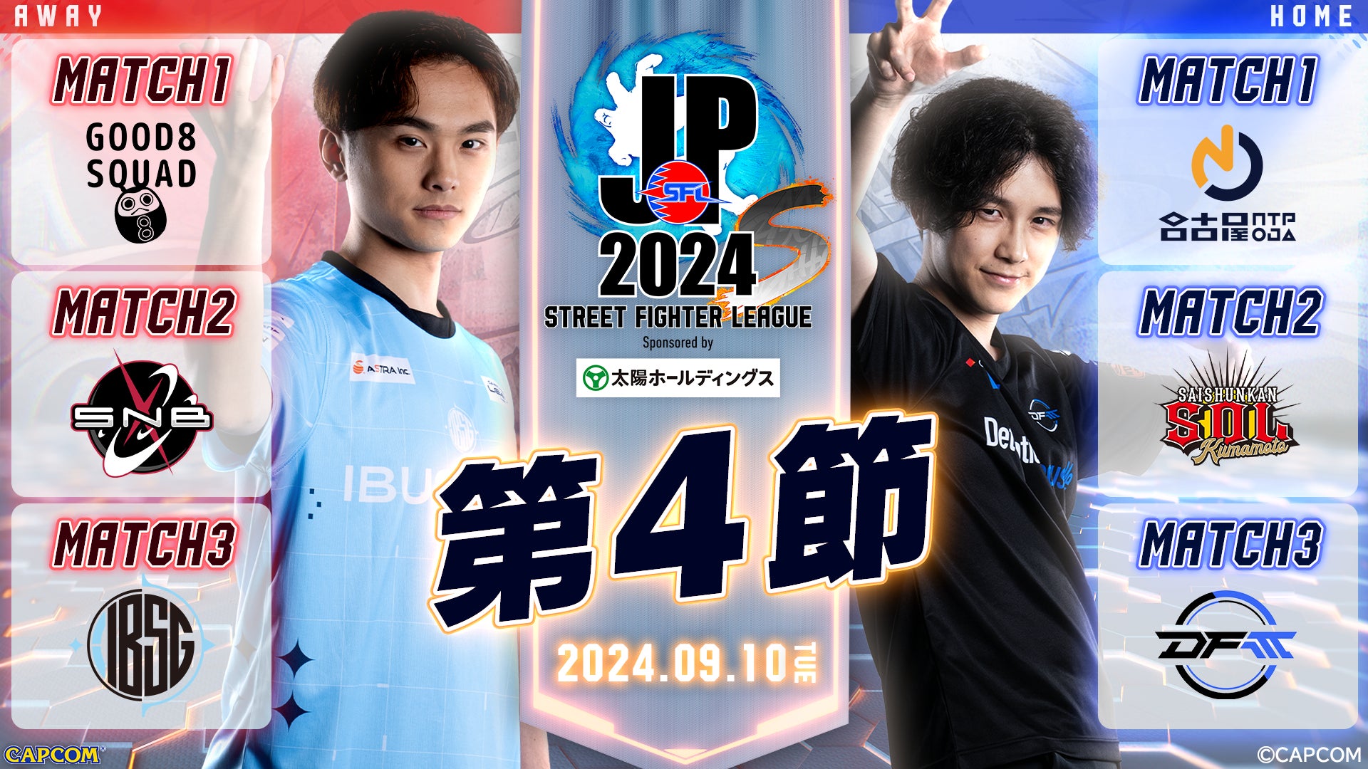 次回、「ストリートファイターリーグ: Pro-JP 2024」は、9月10日(火)18時40分から「Division S 第4節」を「CAPCOM Fighters JP」の公式YouTube、Twitchチャンネルにて配信します。