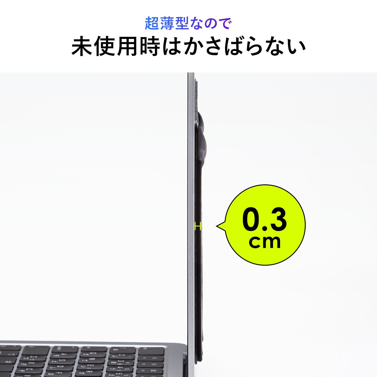 貼り付け後はかさばりにくい厚さ0.3cmの薄型仕様です。