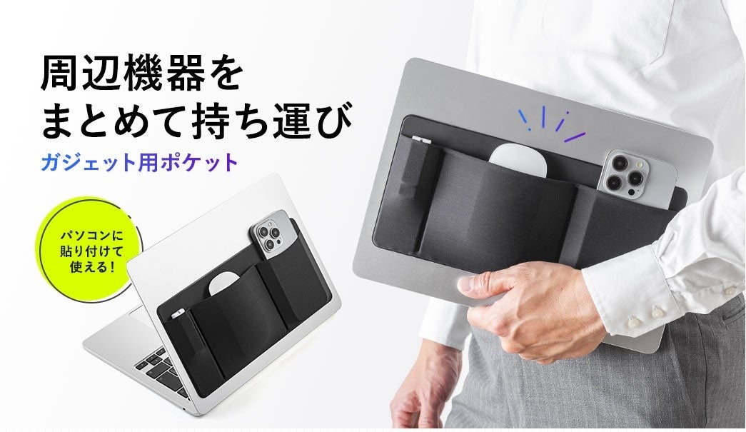 貼り付けるだけで周辺機器をまとめて持ち運べる後付けポケットを発売
