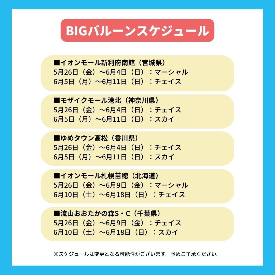BIGバルーンはチェイスだけはなく、元気なダルメシアンのおとこのこ〈マーシャル〉と、おませでかしこいコッカースパニエルのミックスのおんなのこ〈スカイ〉も、引き続き展開いたします。