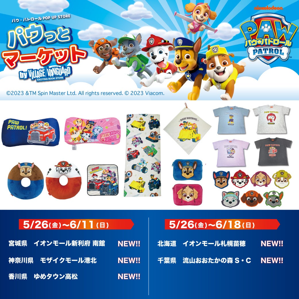 株式会社ヴィレッジヴァンガードコーポレーション(所在地:愛知県名古屋市、代表取締役社長:白川篤典)は、大人気プリスクール向けアニメ「パウ・パトロール™」のPOP UP STORE『パウっとマーケット -by VILLAGE VANGUARD-』において、2023年5月26日(金)より〈北海道・宮城県・千葉県・神奈川県・香川県〉での開催を決定いたしました。