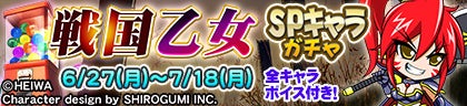 ボイス付SPキャラ「上杉ケンシン」をはじめとする「戦国乙女」のキャラクター全13種が期間限定で登場します。