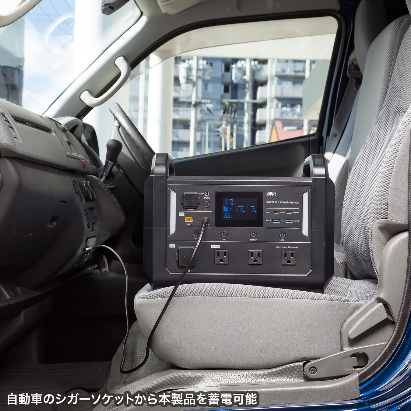 付属のシガープラグアダプタで、車のシガーソケットから蓄電することもできます。
