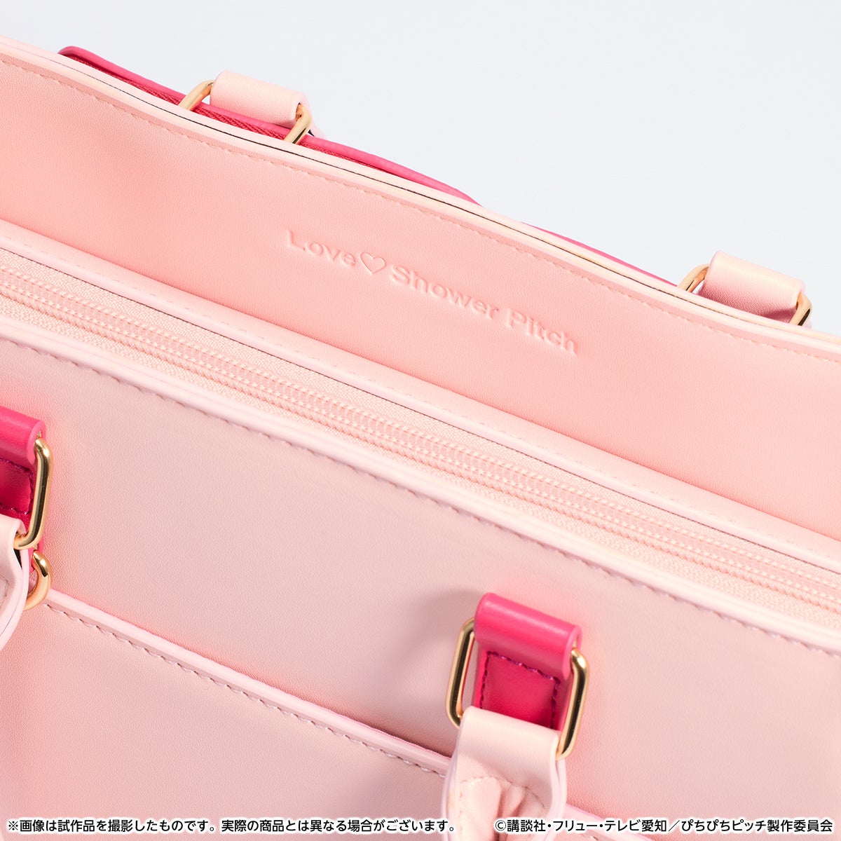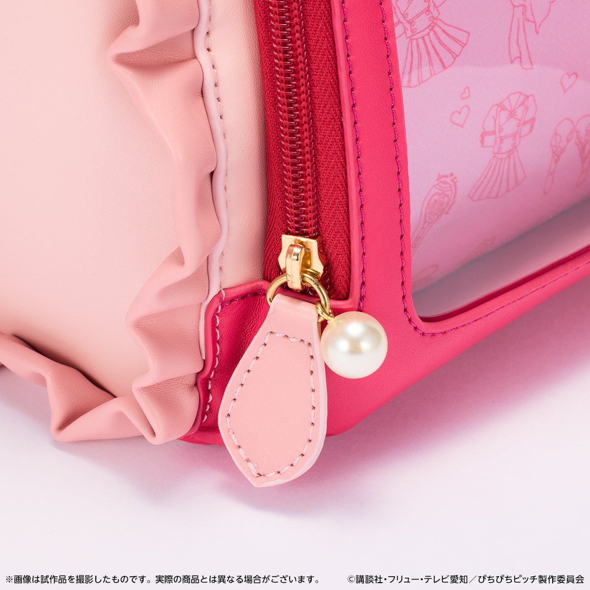 ファスナー部分にパールを付属していたり、るちあの決めセリフである「Love♡Shower Pitch」がさりげなく型押しされていたりと、細かい装飾にもご注目ください。