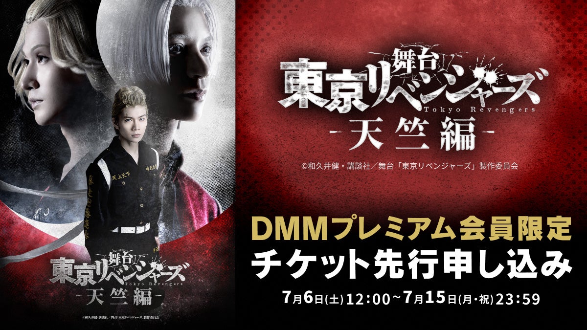 合同会社DMM.com(本社:東京都港区、会長 兼 CEO 亀山敬司、https://dmm-corp.com/ 以下DMM )は、大人気漫画『東京卍リベンジャーズ』(講談社「週刊少年マガジン」所蔵)を原作とした舞台『東京リベンジャーズー天竺編ー』のDMMプレミアム会員向け先行チケットの申し込み受付を本日より開始いたしました。