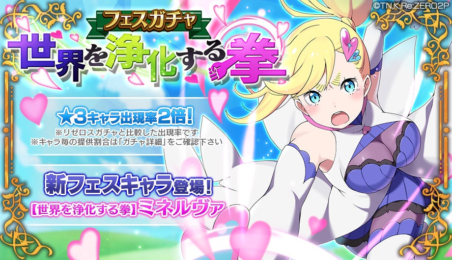 また、フェスガチャでは★3キャラクターの出現率が、リゼロスガチャの2倍になります!