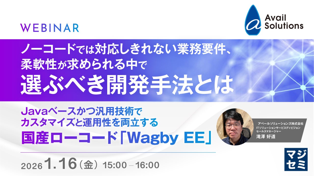 マジセミ株式会社は「ノーコードでは対応しきれない業務要件、柔軟性が求められる中で選ぶべき開発手法とは」というテーマのウェビナーを開催します。