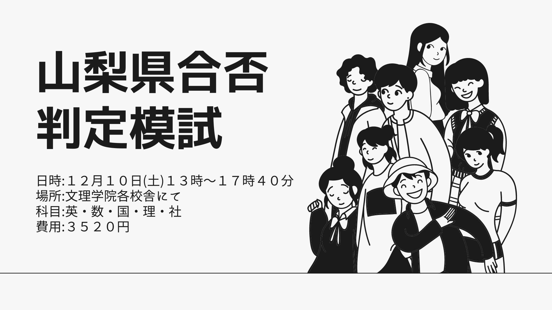株式会社 学研ホールディングス(東京・品川/代表取締役社長:宮原博昭)のグループ会社、株式会社文理学院(山梨・都留/代表取締役社長:小倉勤)は、山梨県合否判定模試(12/10実施)と吉高理数科判定模試(12/18実施)の受験者を募集しています。