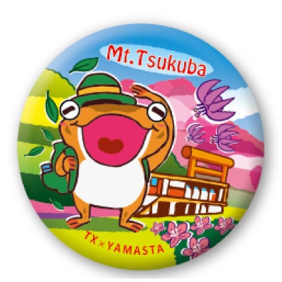 筑波山名物のガマにちなみ、筑波山に行く/筑波山から帰路につく登山者の安全守りの缶バッジです。その名も「無事カエル缶バッジ」。缶バッジは蓄光加工によって夜道で光るため、カエリ道のお供になります。