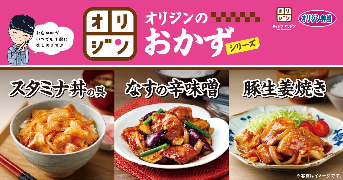 弁当で定番の「生姜焼き」、大人気の「なすの辛味噌」、パンチのある「スタミナ丼」がおかずシリーズとして冷凍食品になりました。是非、ご自宅でオリジンこだわりの美味しさをご賞味ください!