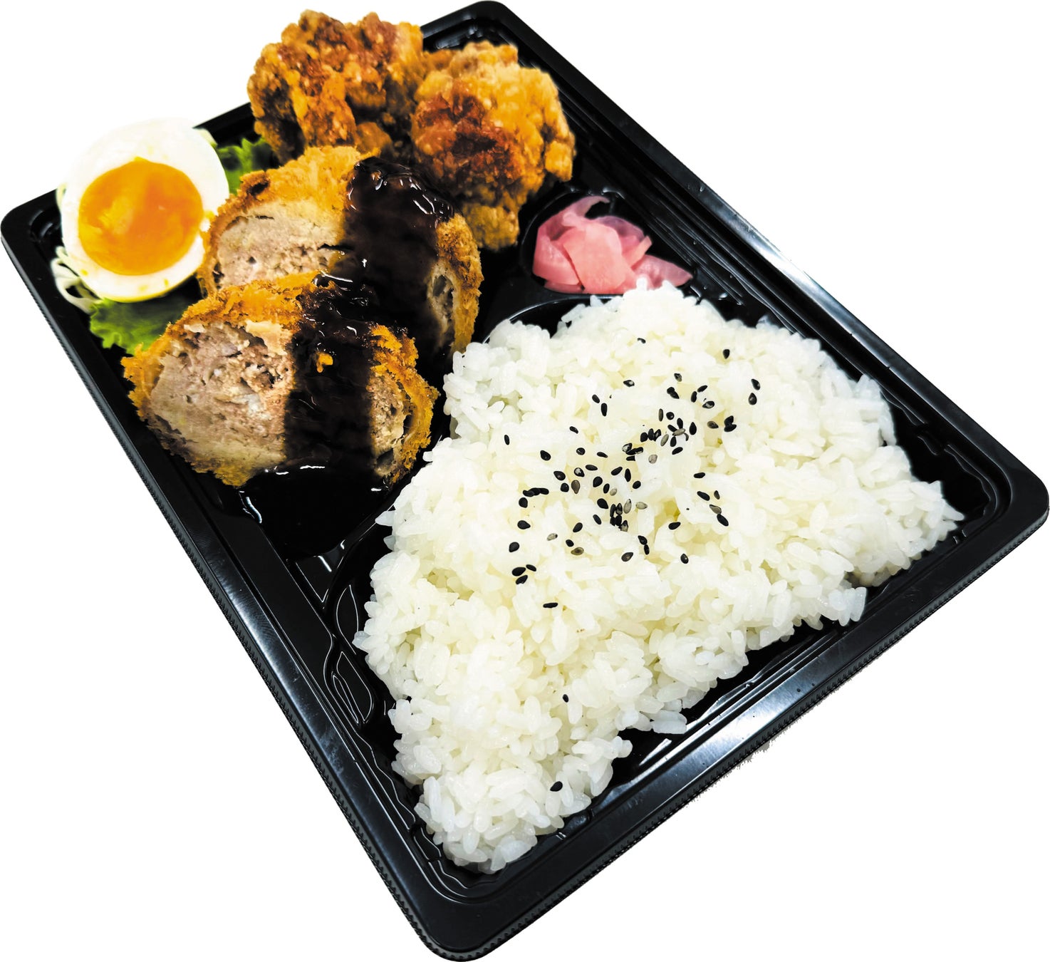 同じく50周年を迎えるイオンのブランド牛「トップバリュ タスマニアビーフ」を使用した、50周年記念セールオリジナルのメンチカツと、イオンリテールの一番人気の看板総菜「唐揚げ唐王」の肉感あふれるおかずを楽しめる弁当です。タスマニアビーフメンチカツは、ボイル・ソテーの2種類の玉ねぎをたっぷり使用し、玉ねぎ本来の甘みと旨味を生かしているほか、粗めのパン粉を使用することでサクサク感を追求し、お肉と玉ねぎの旨みを中に閉じ込めたジューシーな味わいです。