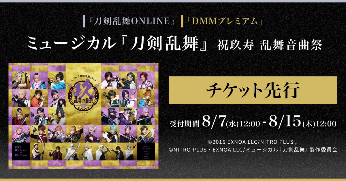 ミュージカル『刀剣乱舞』 祝玖寿 乱舞音曲祭 『刀剣乱舞ONLINE』ゲーム内チケット先行&「DMMプレミアム」会員向けチケット先行の申し込み受付スタート