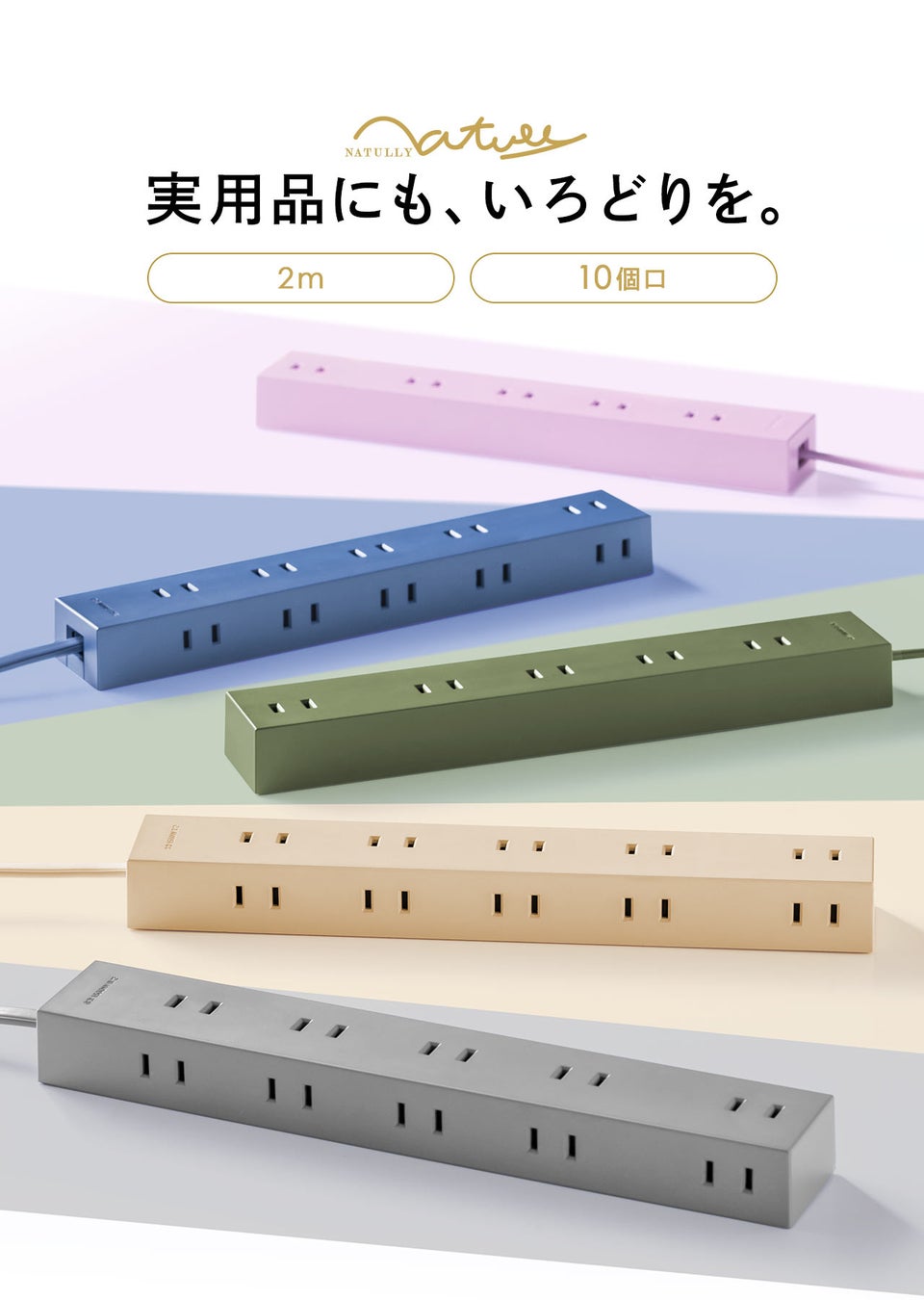 実用品にも、いろどりを。機能&デザインを兼ね揃えた10個口のタップ『NATULLY(ナチュリー)』5色のカラーで5月7日に発売