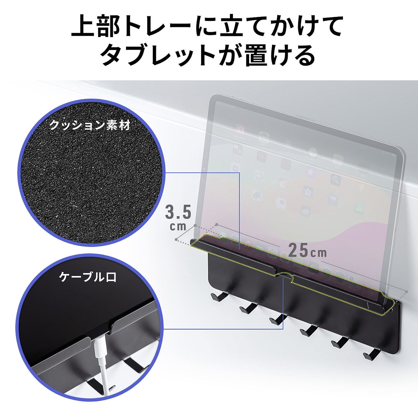 上部にはスマホやタブレットが設置できるトレー付きです。