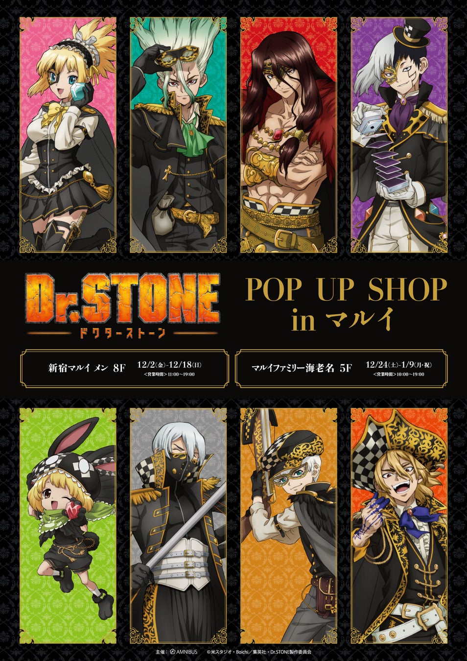 2022年12月2日(金)より新宿マルイ メンにて、12月24日(土)よりマルイファミリー海老名にて『Dr.STONE』のイベント「Dr.STONE POP UP SHOP in マルイ」の開催が決定いたしました。