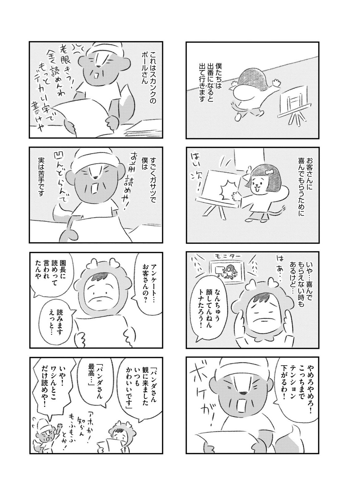 個性がないことに悩むトナカイのトナたろうはいつか人気者になることを夢見て、今日も楽屋から動物園のお客さんの前へと向かいます。楽屋ではガサツな先輩・スカンクのポールさんにからまれて大変なこともあるけれど、大ベテラン・ラッコのらっ子師匠から深~い教えを授かったり。個性豊かな動物たちと過ごす楽屋での時間はトナたろうにとってとても大切な時間。新しく来る者もあれば、去る者もあり。ウケる日もあればウケない日もあり。一日として同じ日はない楽屋の日常をトナたろう目線で綴る楽しい楽屋のおはなしです!