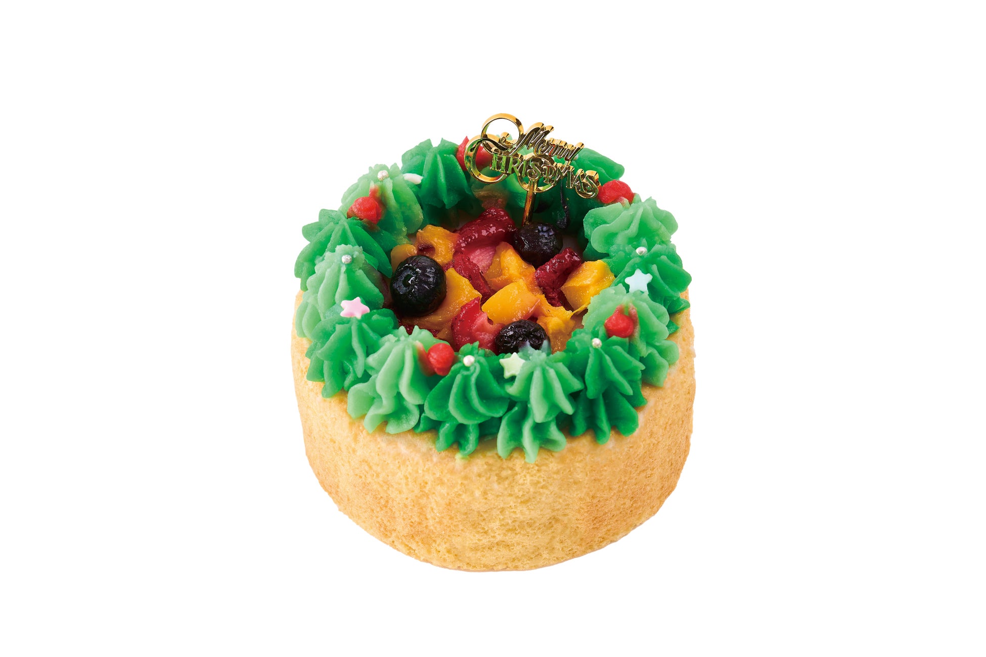 商品特徴:極力油分を少なくし、ヘルシーに仕上げました。飾り絞りには、クリームを使用せずマッシュポテトで飾り付け、フルーツをたっぷり乗せた彩りも可愛いクリスマスケーキです。
