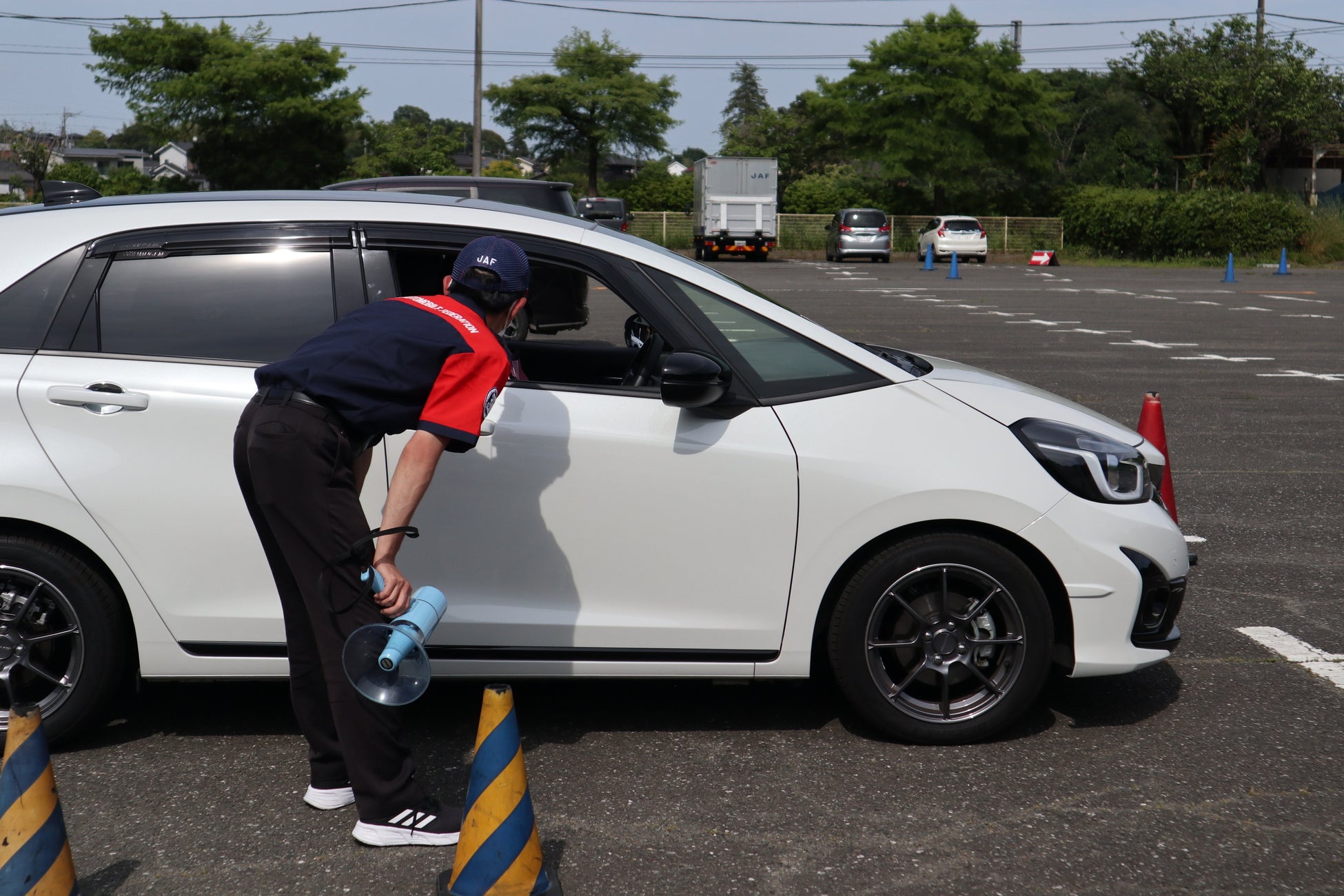 本講習では、公道では体験できない運転操作や、車の挙動をマイカーで体験できます。ご自身だけではなかなか気づきにくい「運転のクセ」や「身体能力の変化」について、JAFインストラクターと一緒に確認します。見通しの悪い交差点を安全に通過するための「多段階停止※1」や、ブレーキを踏み込む強さ・速さや車の挙動が確認できる「急ブレーキ操作」など、ご自身のクルマを実際に運転しながら体験していただきます。