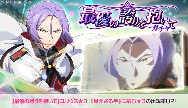 「リゼロ」公式スマホゲーム『Re:ゼロから始める異世界生活 Lost in Memories』本日より、ユリウス★3が登場する「【最優の誇りを抱いて】ガチャ」を開催!