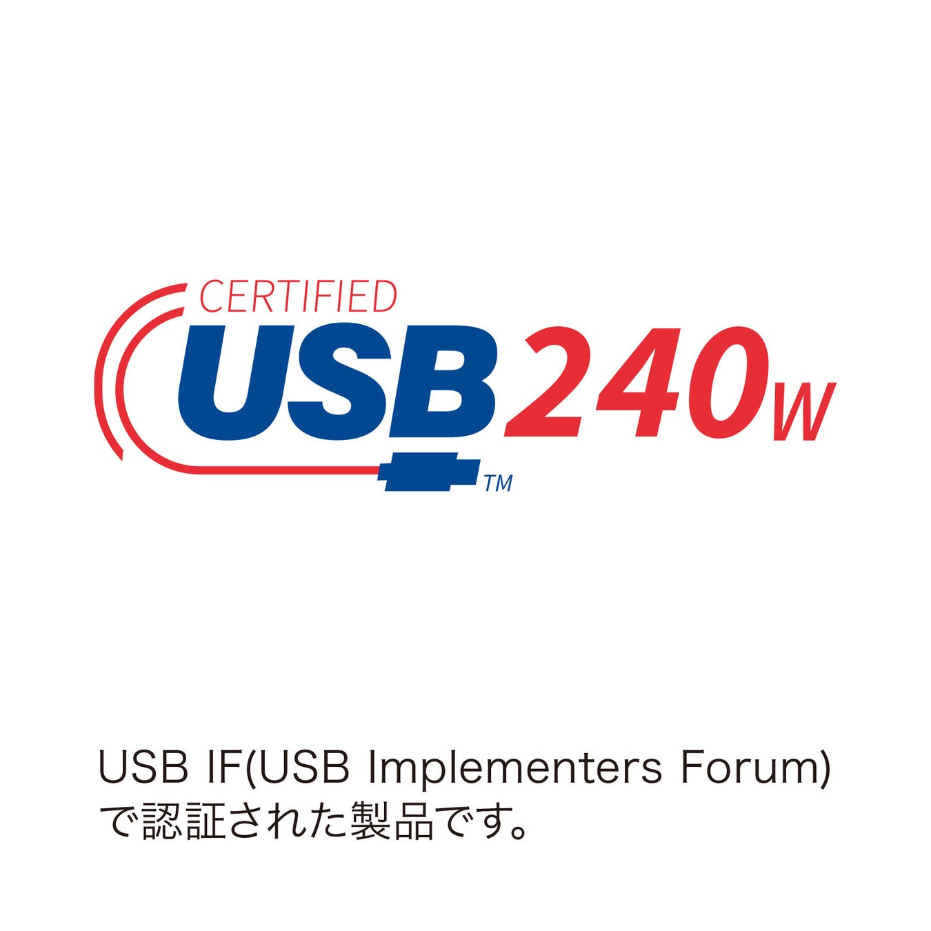 USB-IF認証品、USB Power Delivery 240W対応であらゆる機器を急速充電できるUSB2.0 Type-Cケーブルを発売