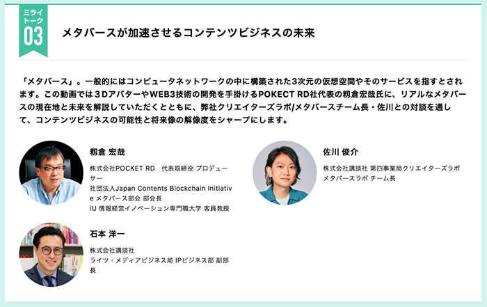 【PICKUP 2】メタバースが加速させるコンテンツビジネスの未来