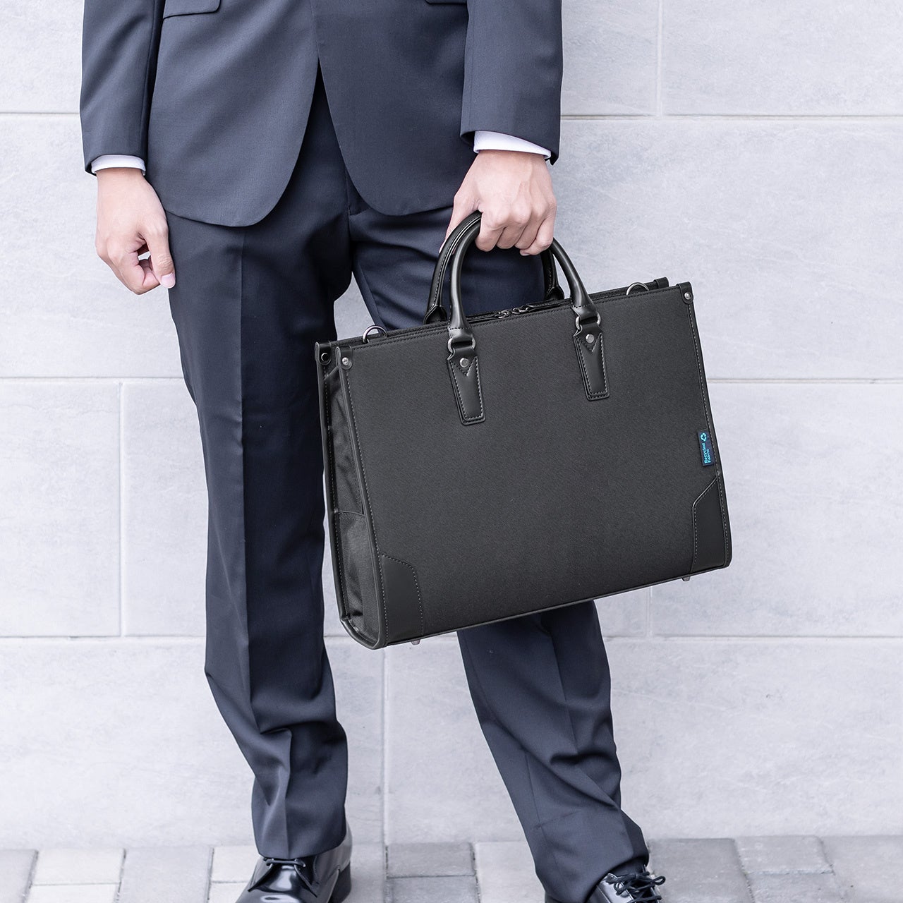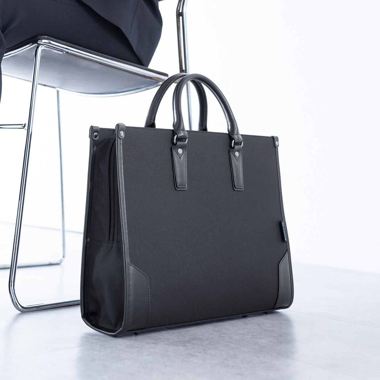 本製品は、黒を基調とした、シンプルデザインのビジネスバッグです。