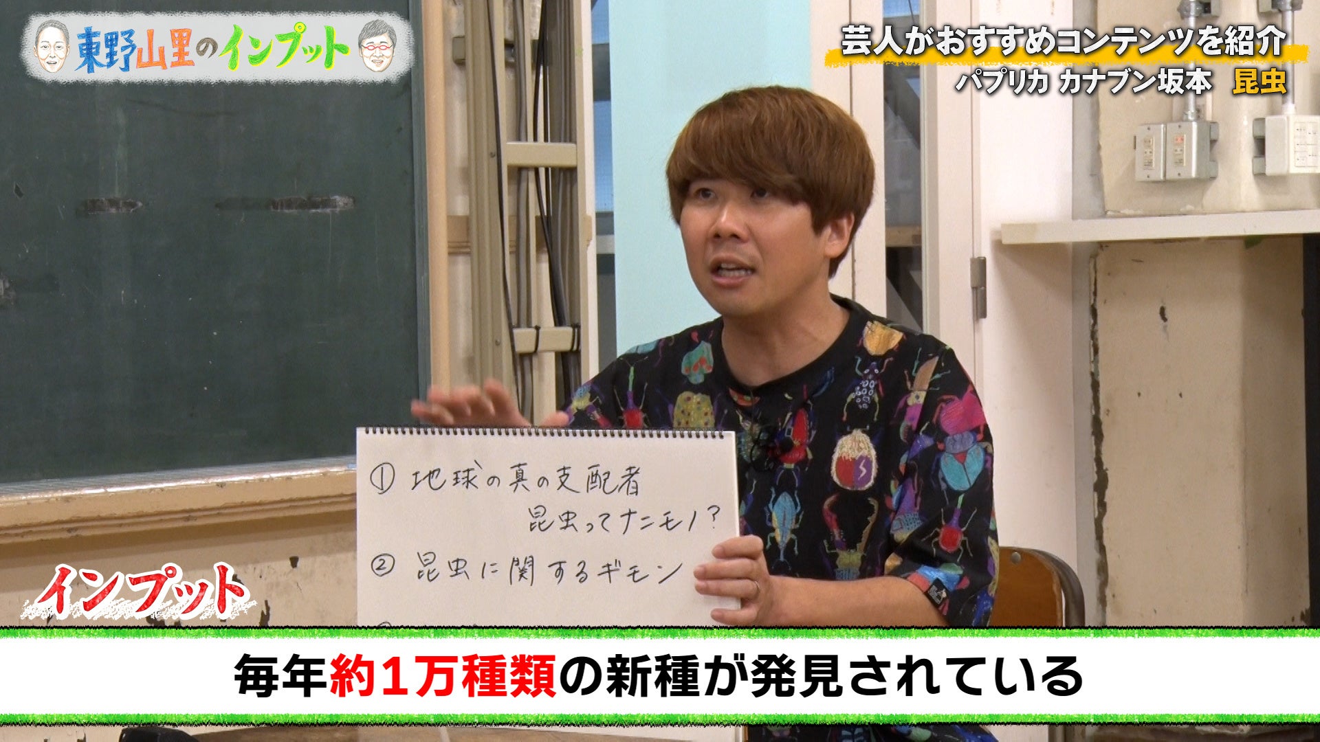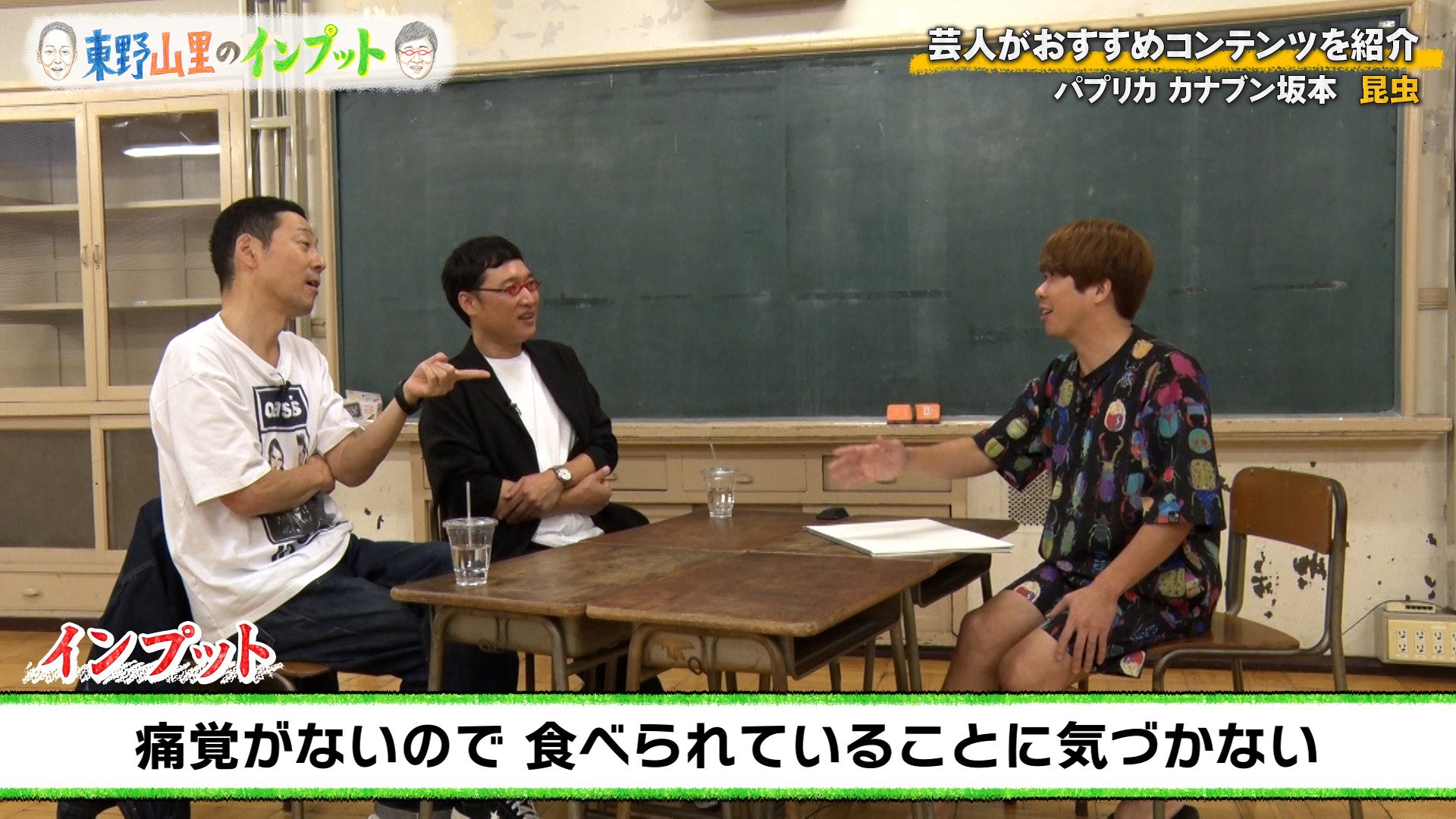 こうしてたっぷりと昆虫トークを繰り広げる坂本ですが、東野たちの素朴な疑問に「どうなんですかね?」と返答する一幕が。東野は「こんなに清々しい芸人、久々に見た。あらがえへん」と言うと、山里も、これまでの芸人は、どんな質問をされても、自分の持っている知識でなんとかしようとしてきた、と大笑いします。