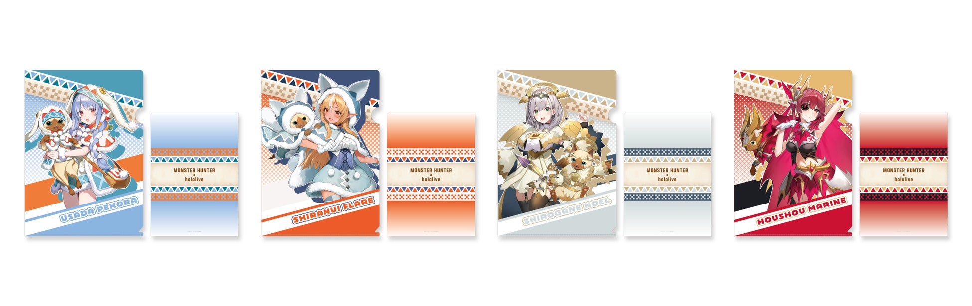 「モンスターハンター×ホロライブ3期生」のプライズ景品が投入されている筐体に、500円連続投入で”オリジナルクリアファイル”を全4種の内、ランダムで1つをプレゼントいたします。