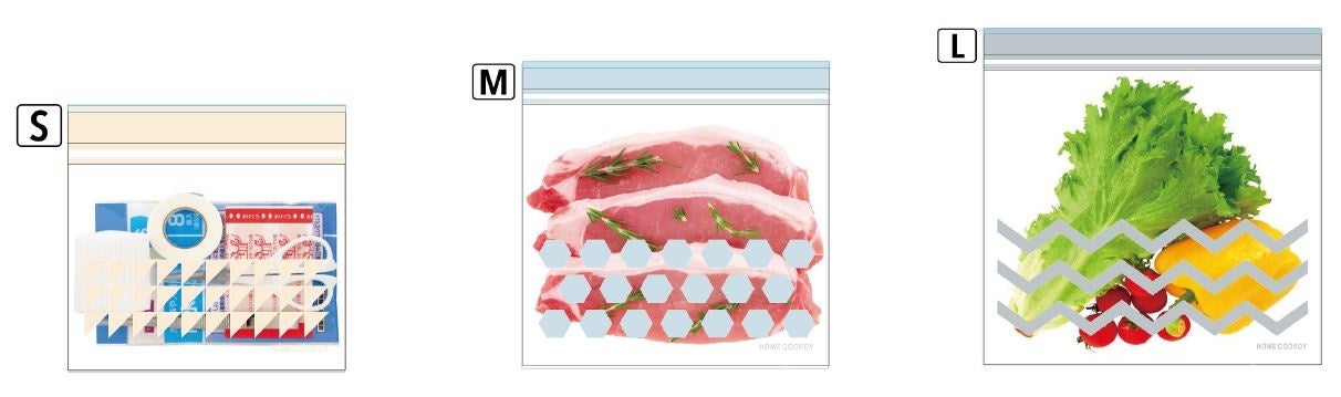このたびホームコーディから、ボリュームのある食材や料理もたっぷりと保存でき、自立するため両手が空いて入れやすいマチつきのフリーザーバッグを新たに発売します。開け口の工夫で開けやすさと閉めやすさにこだわり、サイズはS・M・Lの3サイズを揃え、料理の種類や量に応じて最適なサイズを選べます。食材を新鮮に保つほか、日用品の整理や旅行時の衣類・化粧品などの収納にもお使いいただけます。