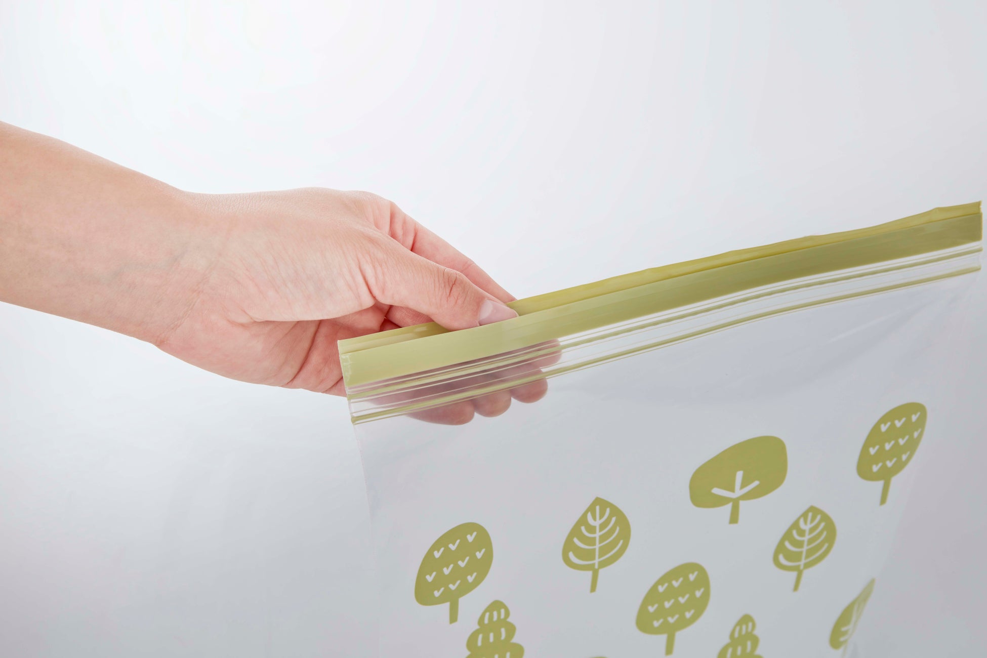 上部のジッパーには凹凸があり、プチプチと音がなるようにしています。凹凸の感触とプチプチの音で閉めた感覚を分かりやすくしています。上下のジッパーの間隔を狭くし、指で挟みやすく1回で閉めやすいほか、従来品より、上下のジッパー幅を半分の約5mmにして、大人から子どもまで指で挟みやすくしています。