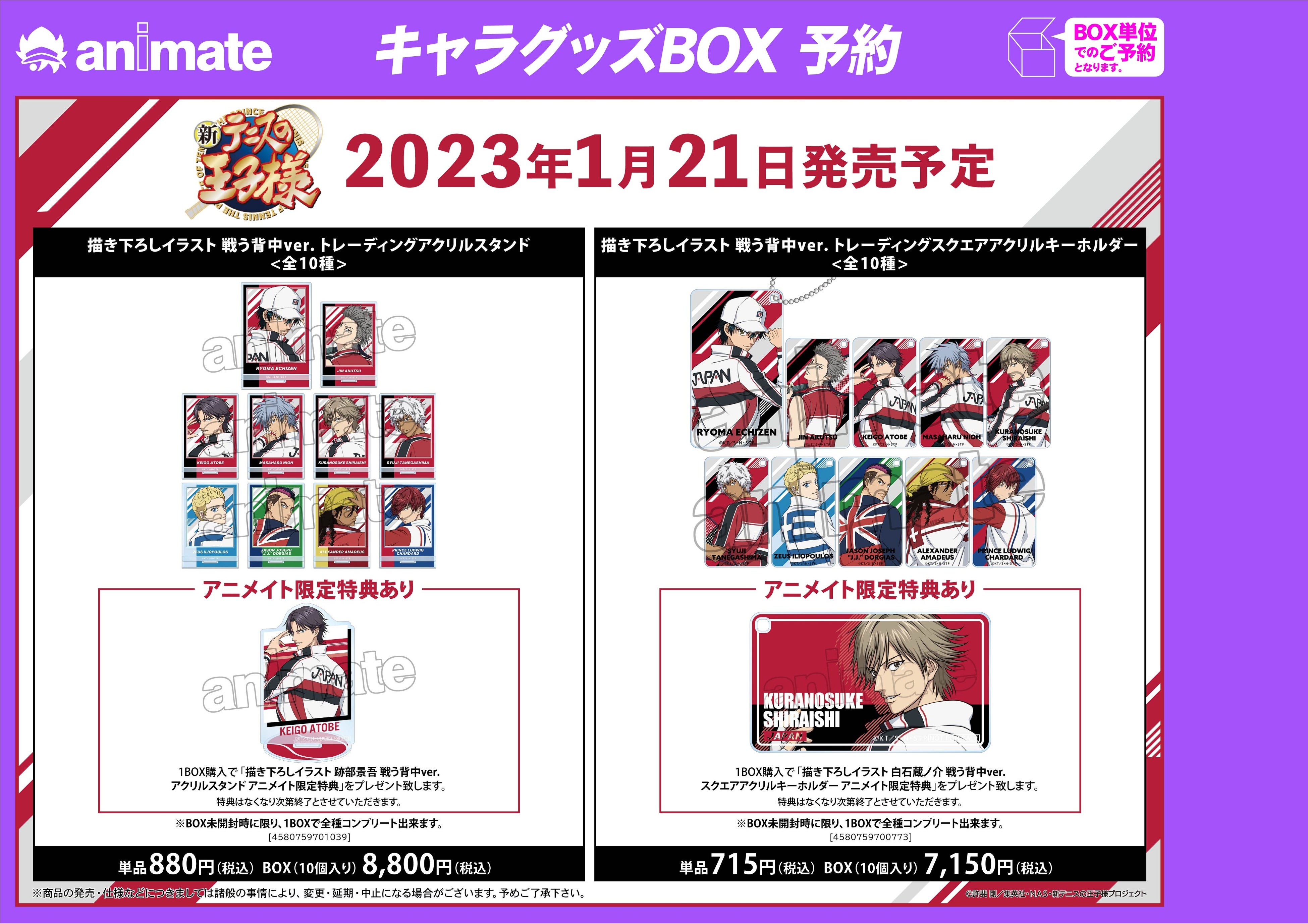 ※1月21日(土)より予約開始予定のECサイト「AMNIBUS」では、BOX購入特典として「描き下ろしイラスト 越前リョーマ 戦う背中ver. スクエアアクリルキーホルダー AMNIBUS限定特典」を予定しております。