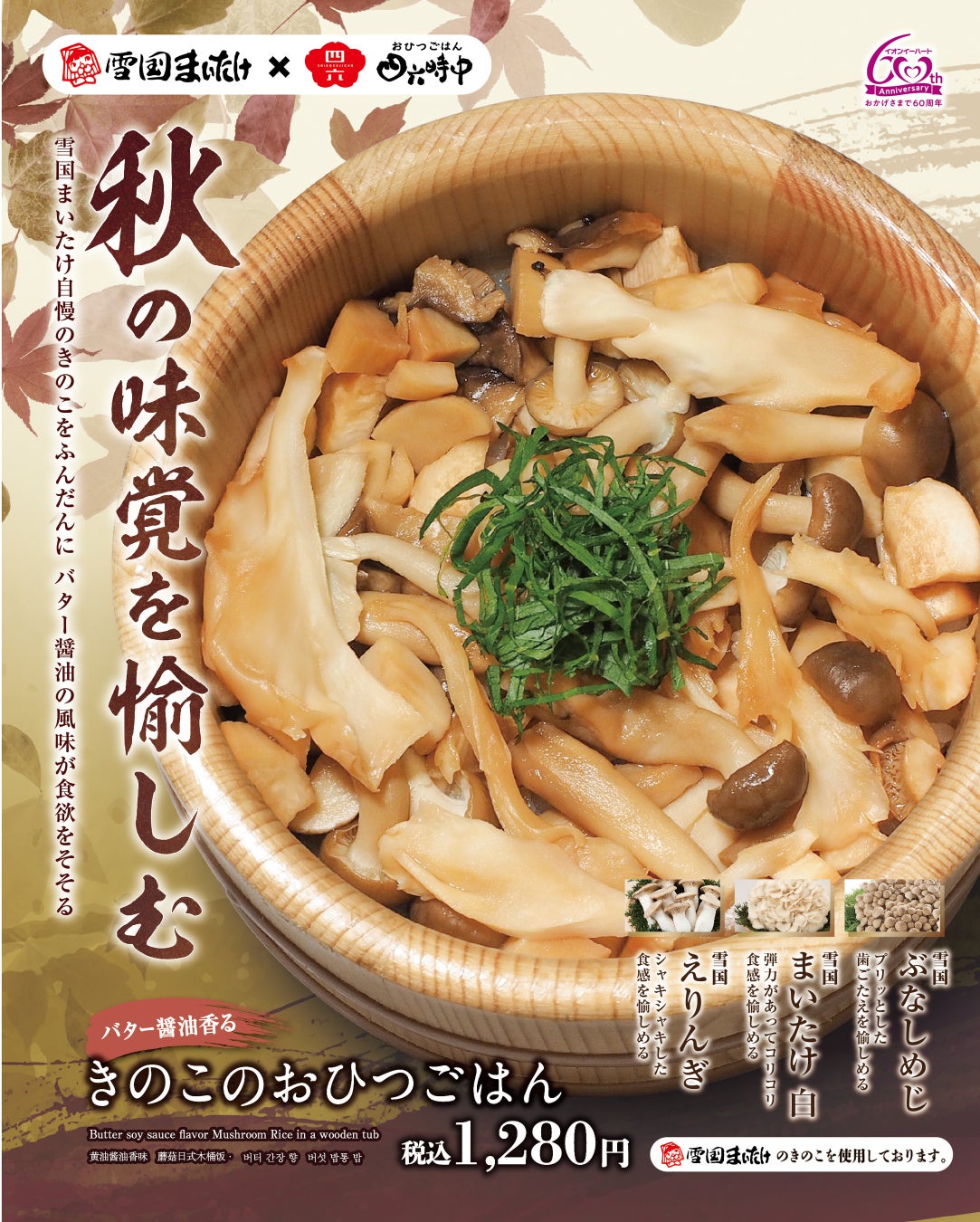 イオンイーハート『おひつごはん四六時中』×『雪国まいたけ』コラボメニュー今年も登場!9月18日(水)より秋季限定販売スタート