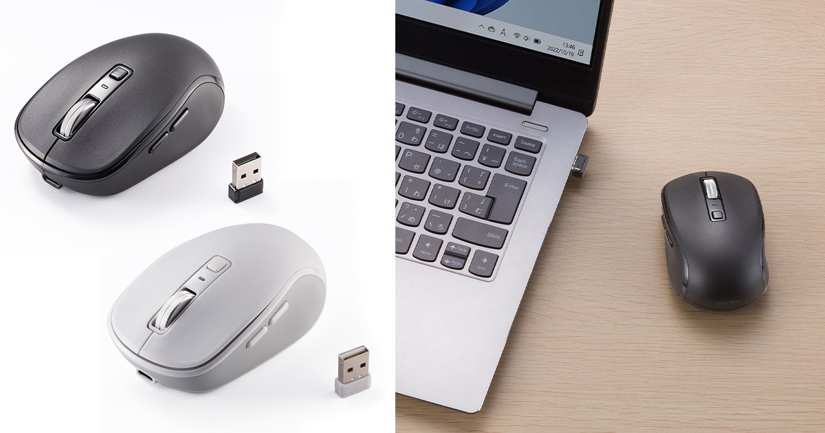 繰り返し使える充電式+静かなクリック⾳でモバイルワークに最適なワイヤレスマウスを発売