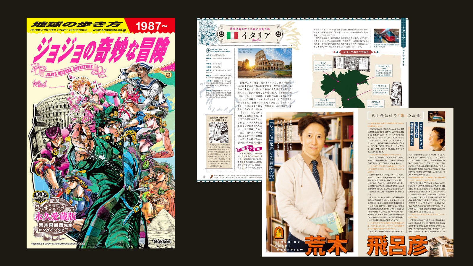 「岸辺露伴と歩くルーヴル美術館」などの芸術特集や、「地球の歩き方」では定番の「旅の準備と技術」も『ジョジョ』仕様。荒木飛呂彦先生の「旅」にまつわる貴重なロングインタビューも掲載した永久保存版。記念すべきコラボガイドをお見逃しなく!