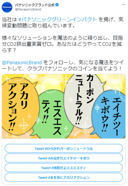 パナソニックブランド公式Twitterで「魔法で地球から減らCO2キャンペーン」を実施