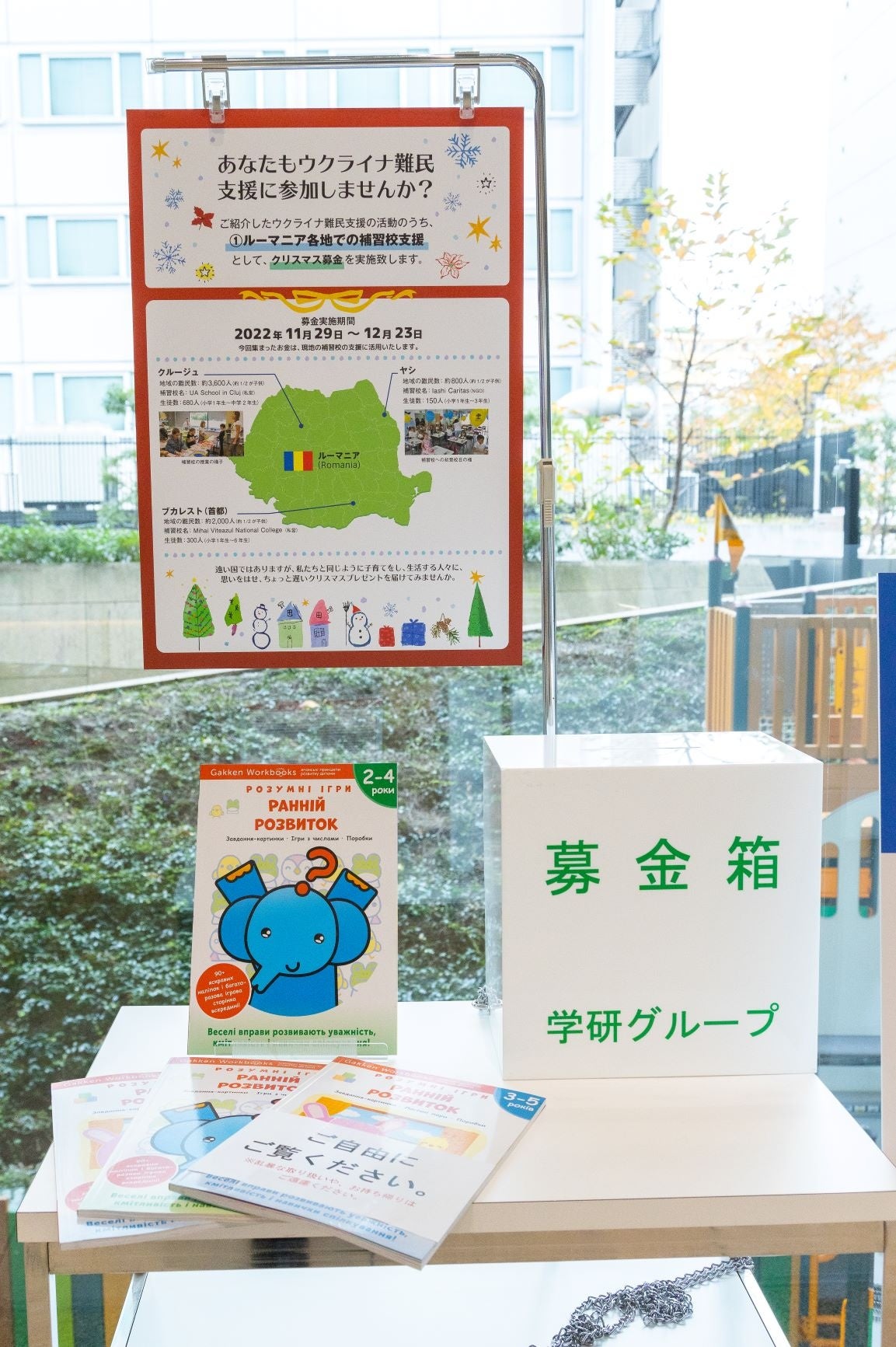 株式会社学研ホールディングス(東京・品川/代表取締役社長:宮原博昭)は、11月29日(火)に学研東京本社ビル(東京・西五反田)でクリスマスツリーの点灯式を行いました。あわせてウクライナ難民募金の実施も開始しました。