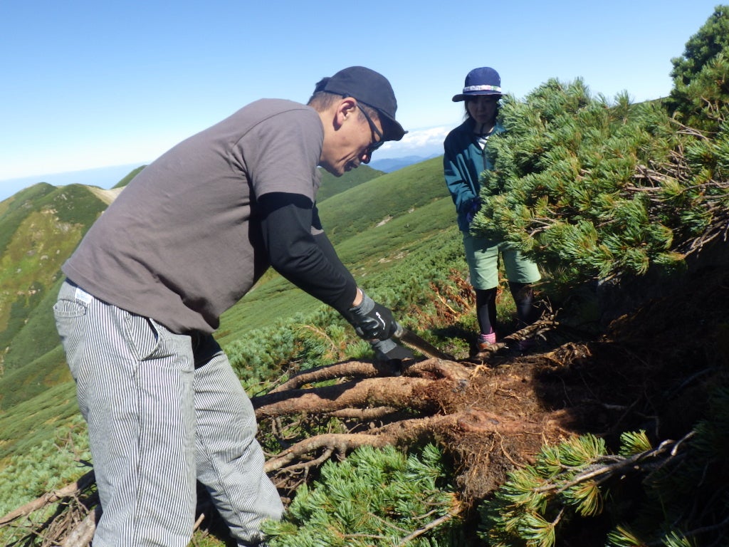 北アルプス・白馬岳、雨飾山周辺の登山道整備。主に木道や階段の修繕。夏と秋に2回ずつ実施。