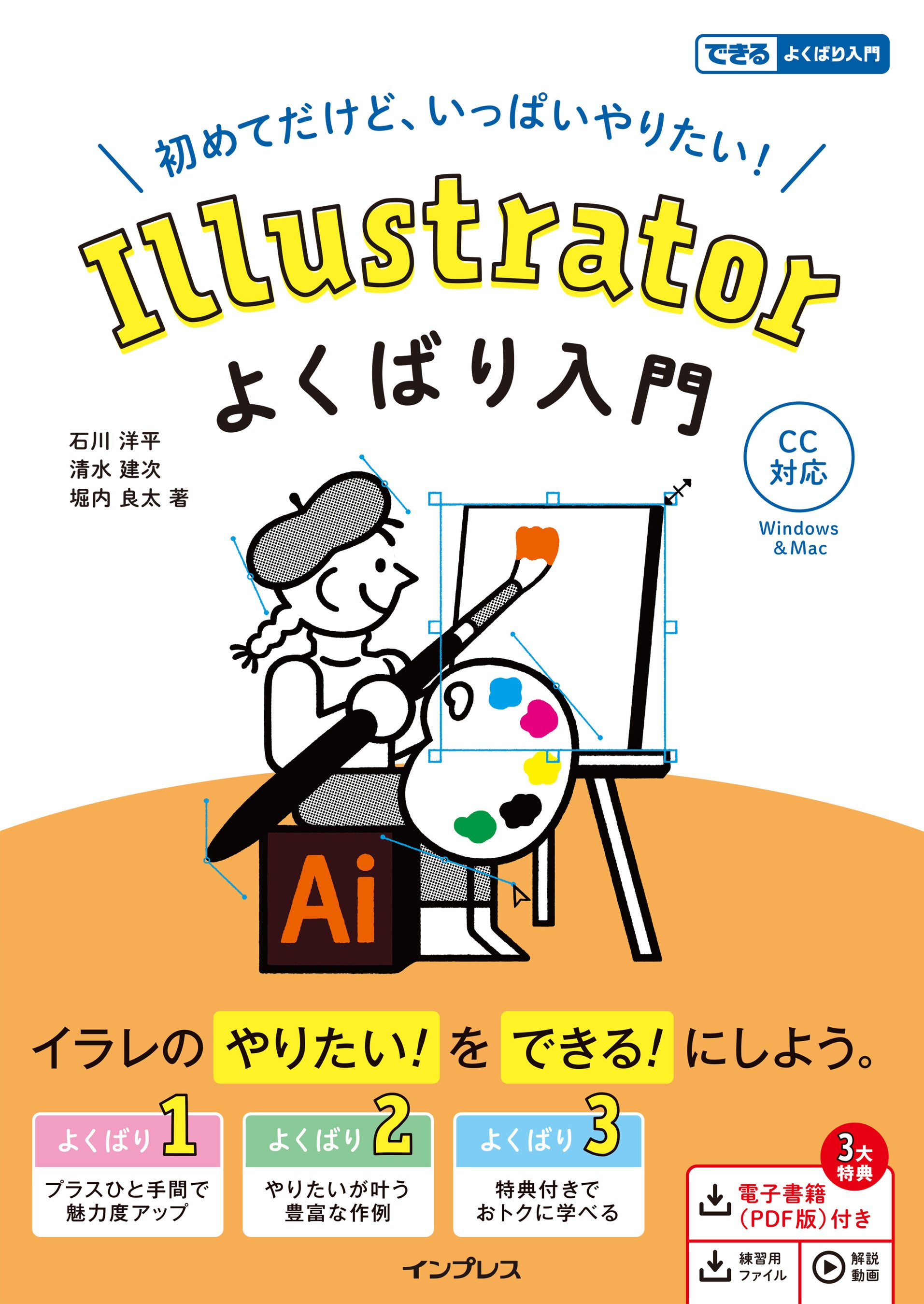 初めてだけど、いっぱいやりたい!いいものをつくりたい!そんな気持ちにこたえるため、取り組みやすさと満足度を両立したのが「できるよくばり入門」シリーズです。新しいことにチャレンジしたい人や、学び直したい人にぴったりの解説書です。本書『Illustrator よくばり入門』は、『Premiere Proよくばり入門』、『Photoshopよくばり入門』に続くシリーズ第3弾にあたります。