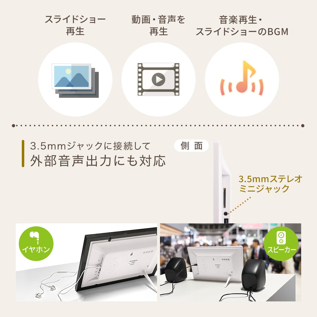デジタルフォトフレーム 10.1インチ 1024×600画素 SD/USB 写真/動画/音楽 リモコン付き ホワイト スライドショー リピート再生