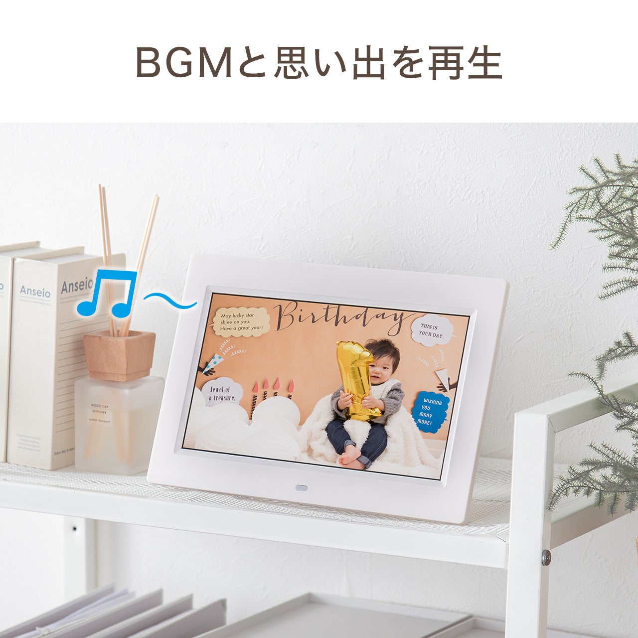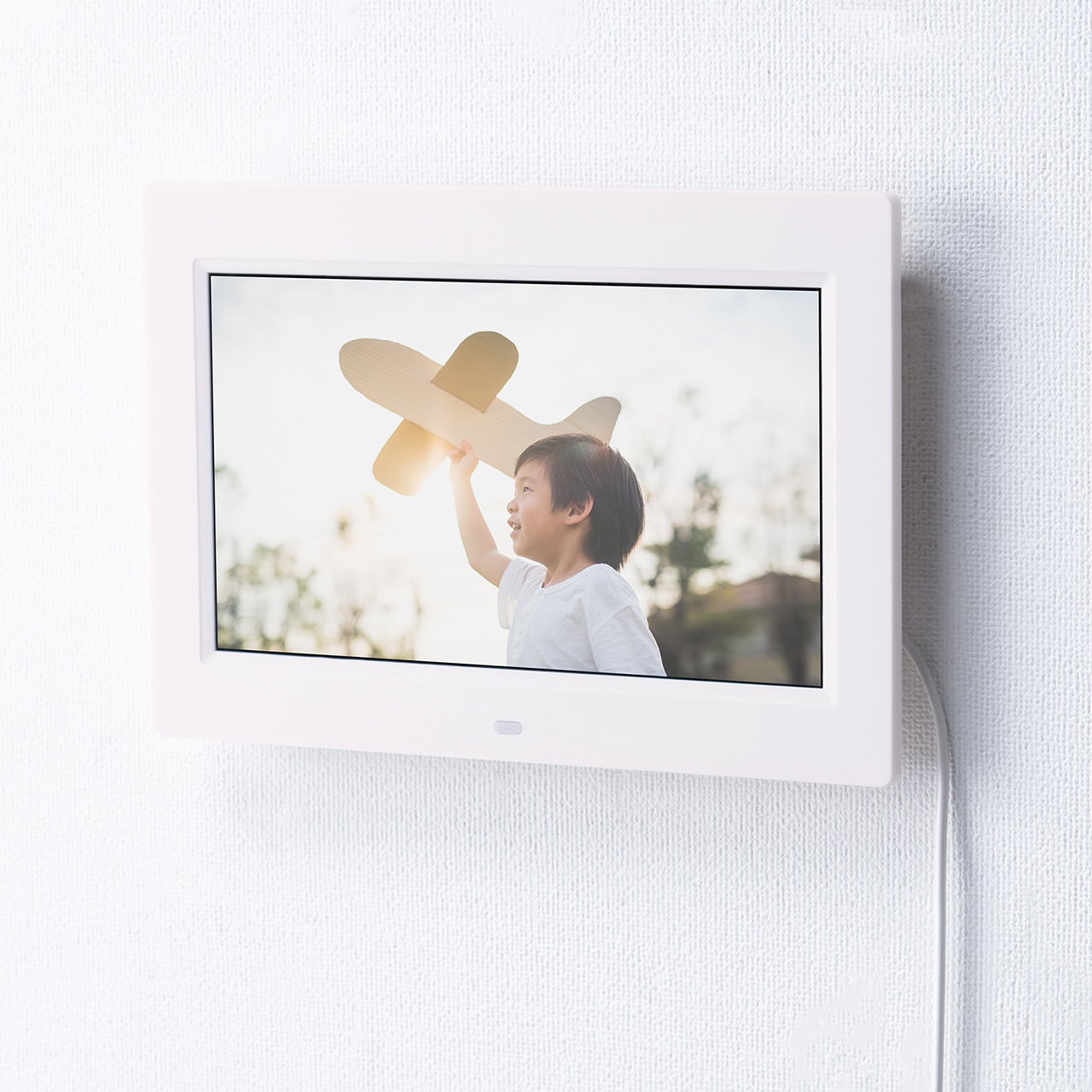 本製品は、SDカードまたはUSBメモリを接続するだけで、写真のスライドショーを楽しめるデジタルフォトフレームです。
