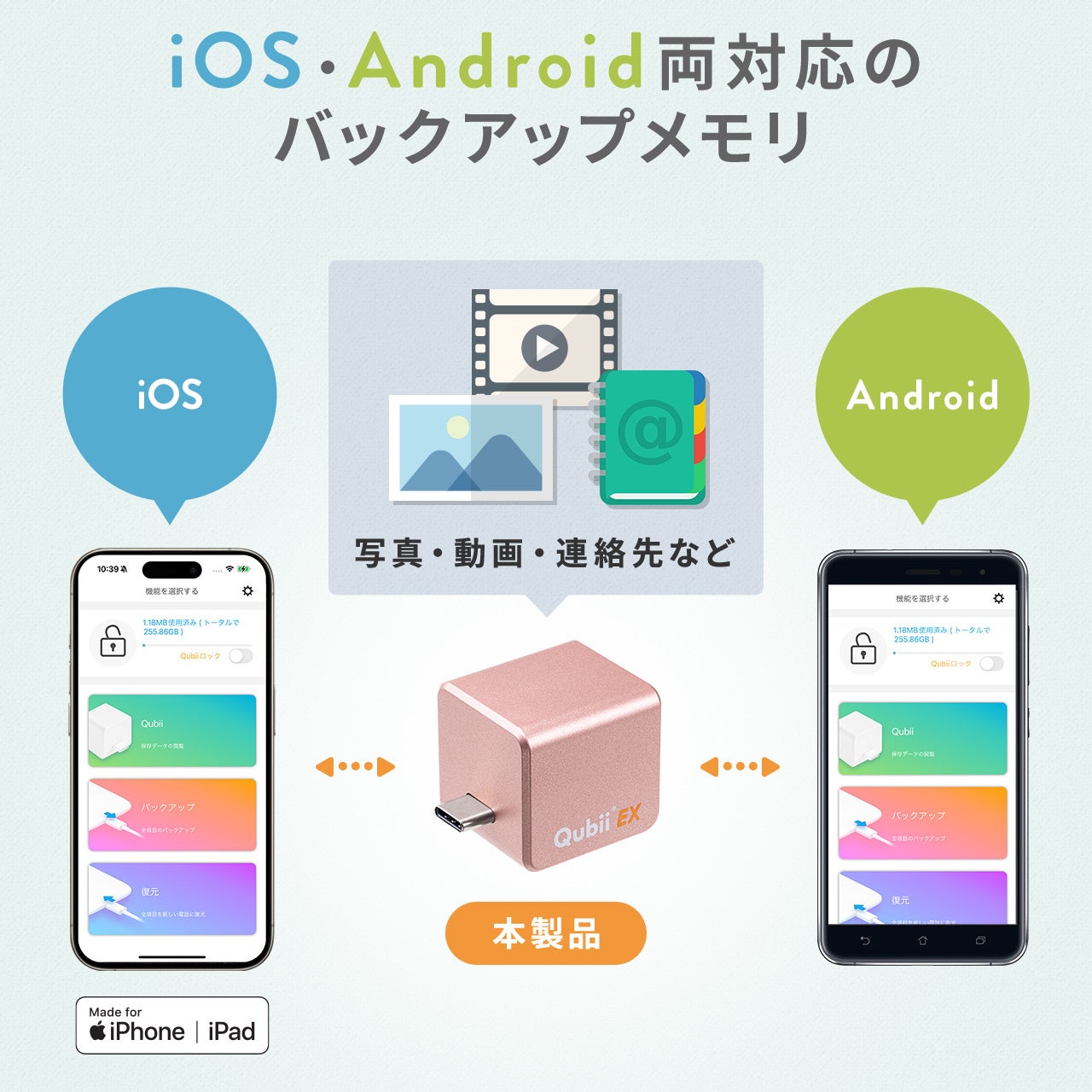 Qubii EX Type-C接続 PD60W 高速充電 iOS Android 自動バックアップ パソコン不要 容量不足解消 iPad iPhone15対応
