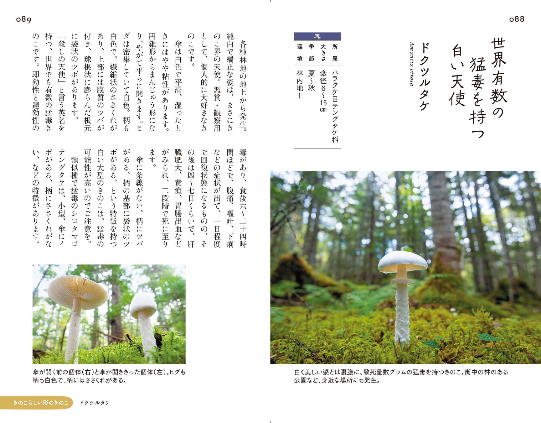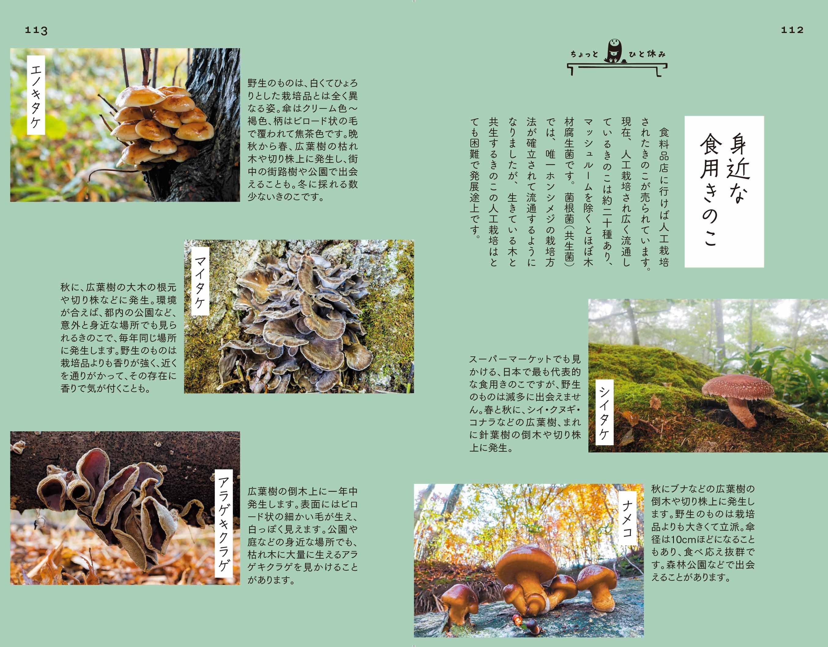 そのほか、きのこ観察をはじめる上で知っておきたい、「菌根菌と腐生菌」の解説や、スーパーでも見かける身近なきのこを紹介する「身近な食用きのこ」などのコラムページも設けました。