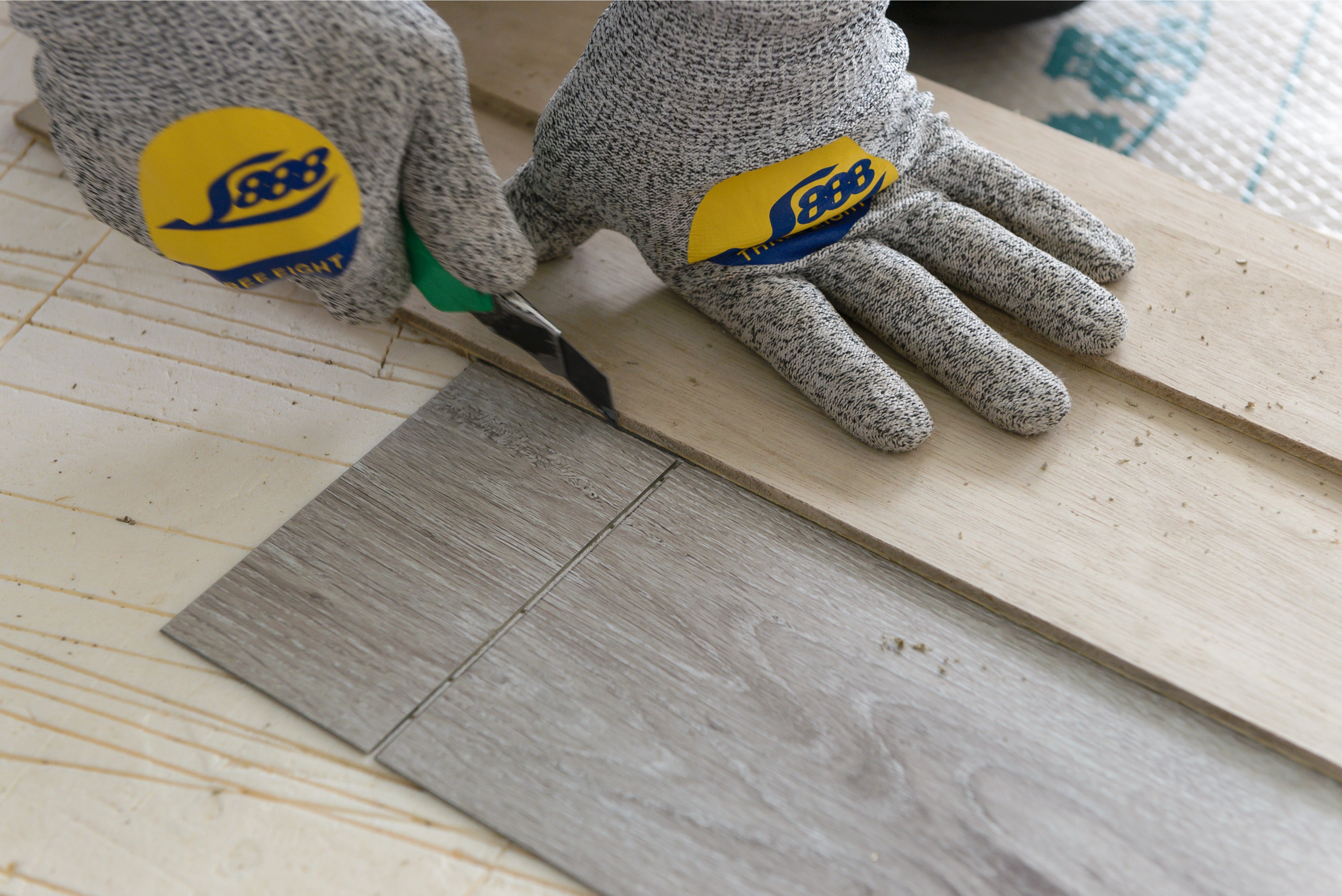 その他、わずか1.5mmの薄い床材はカッターナイフで切断可能。古いフローリングの上から貼るだけの「簡単施工」が特長です(8畳だと約1日で施工)。「休園日に工事を終わらせたい」「電動ノコギリを使った騒音や、粉じんを出したくない」という園側の要望にもお応えします。