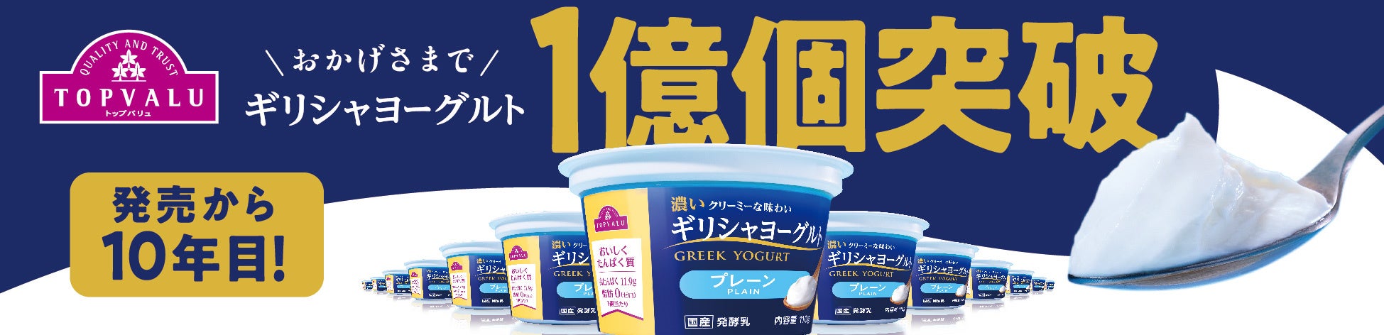 発売から10年目となる本年の9月、トップバリュ ギリシャヨーグルトシリーズは累計販売数1億個※1を突破しました。