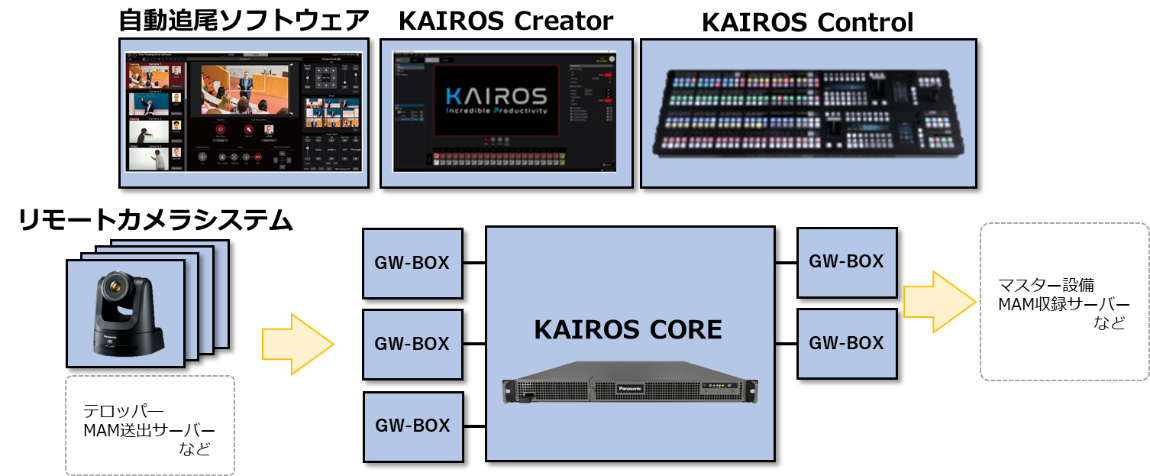 今回、高いシステムの柔軟性をもち、多種多彩なコンテンツの制作・効率的な番組制作を可能にするKAIROSと、グローバルシェア1位(※2)のパナソニックリモートカメラおよび被写体を自動追尾する専用ソフトウェアを組み合わせることで、運用の負担を大幅に減らしたあらゆる番組の制作を実現します。