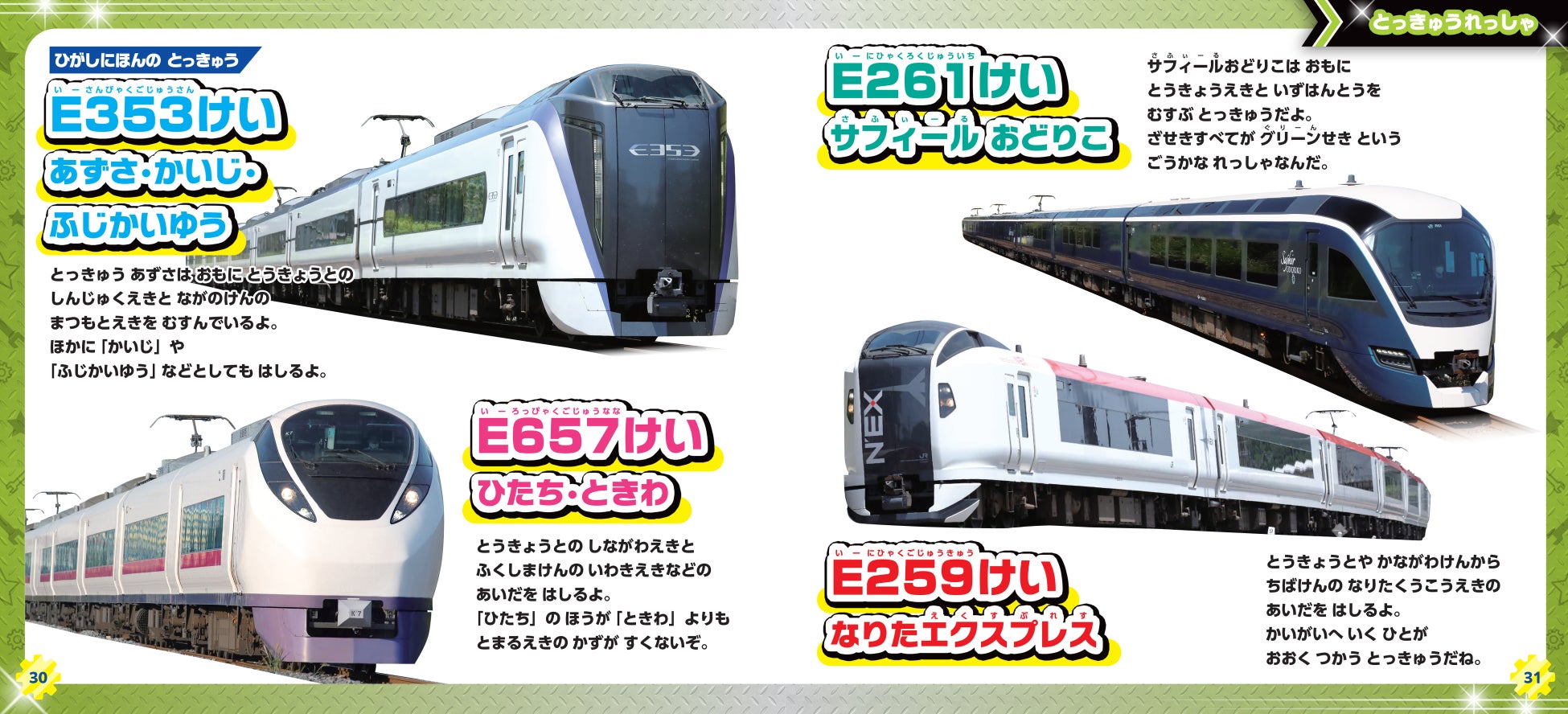 本でも全国の新幹線・特急列車を詳しく紹介! 大迫力の見開きページや、のりものいっぱいのページなど、隅々まで楽しめちゃう♪